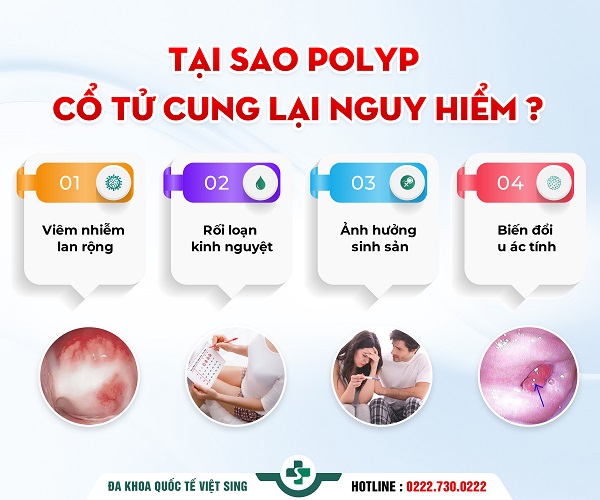 - Tăng nguy cơ ung thư cổ tử cung: Đặc biệt ở phụ nữ trên 40 tuổi, khi mô polyp có thể loạn sản tế bào.