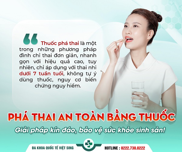 Phá thai bằng thuốc là phương pháp sử dụng thuốc y khoa để chấm dứt thai kỳ mà không cần can thiệp bằng dụng cụ, phù hợp với thai dưới 7 tuần tuổi. Đây là lựa chọn được nhiều chị em ưu tiên nhờ ít xâm lấn, thực hiện nhanh chóng và tương đối nhẹ nhàng. Quy trình phá thai chỉ thực sự an toàn khi được thực hiện tại cơ sở y tế chuyên khoa, dưới sự giám sát của bác sĩ.
